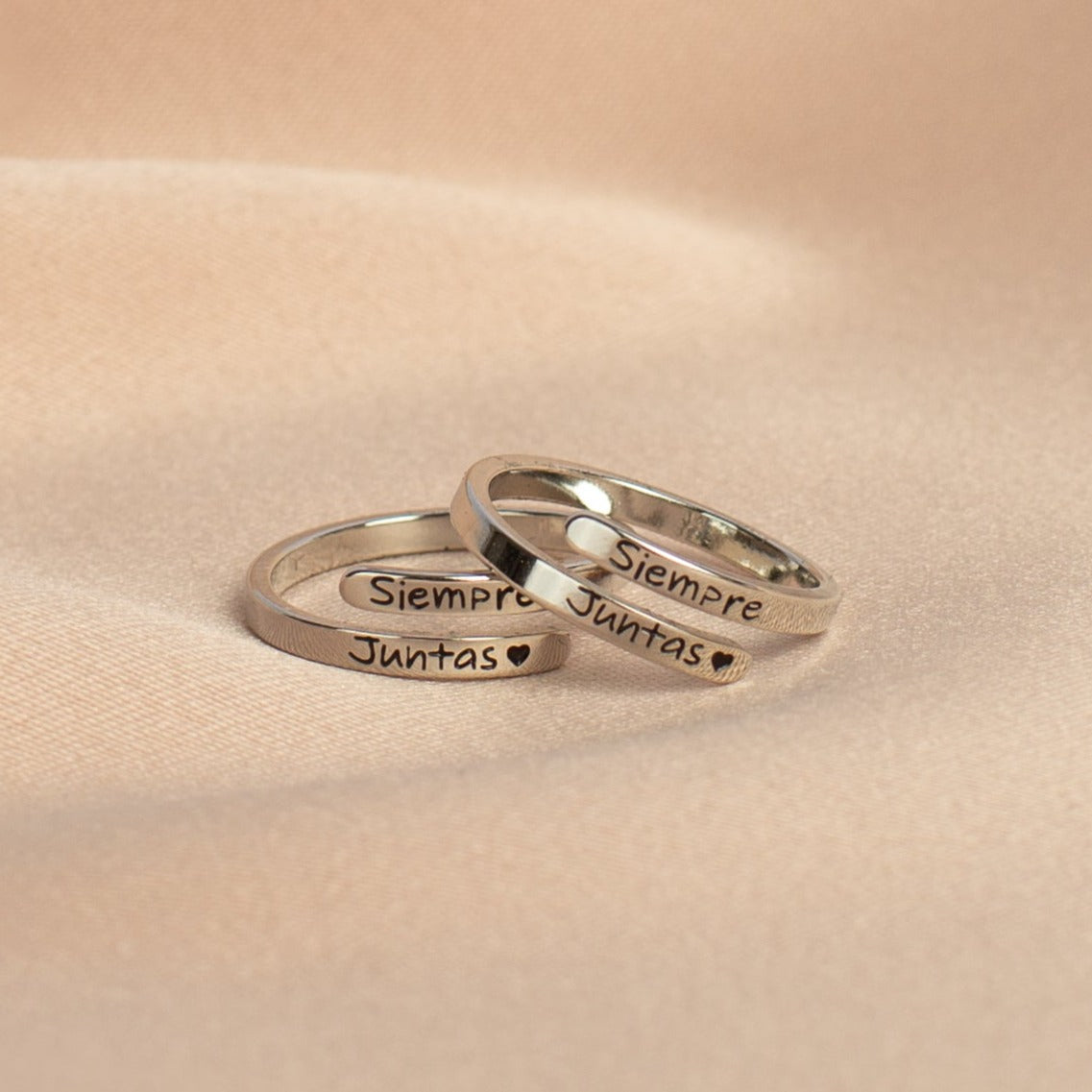 Set de 2 Collares "Siempre" + "Juntas" + 2 anillos Siempre Juntas: Un regalo perfecto para compartir con tus seres queridos y mantenerlos cerca de tu corazón. Un regalo lleno de amor, listo para sorprender y crear momentos inolvidables.