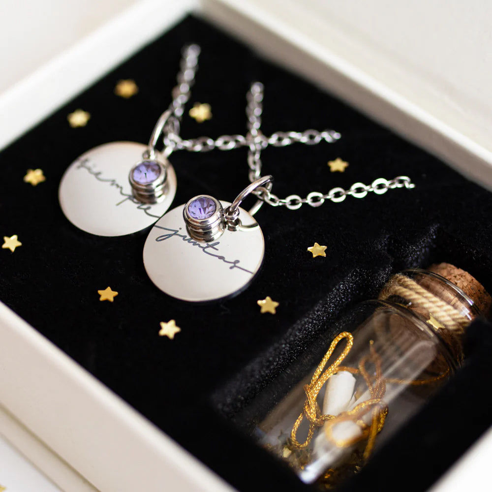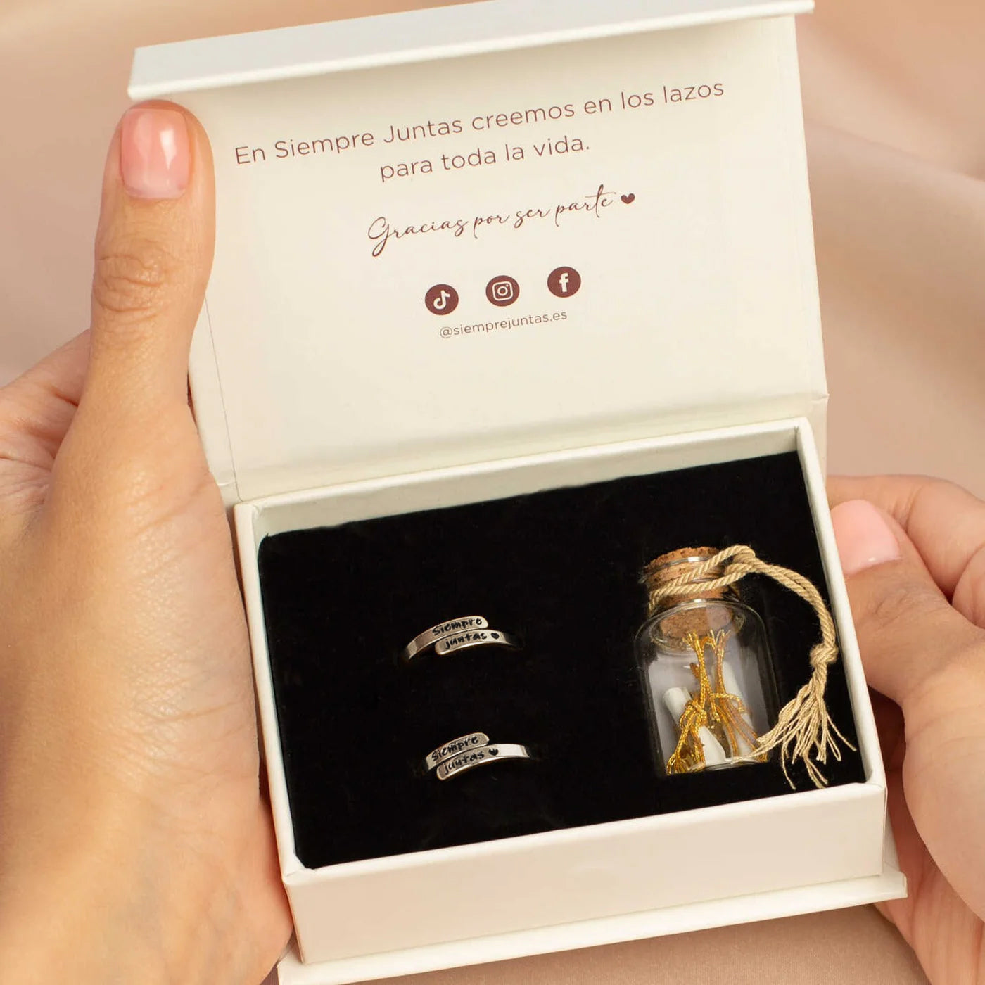 Pack Siempre Juntas: 2 anillos + Collar "Siempre" + Collar "Juntas"